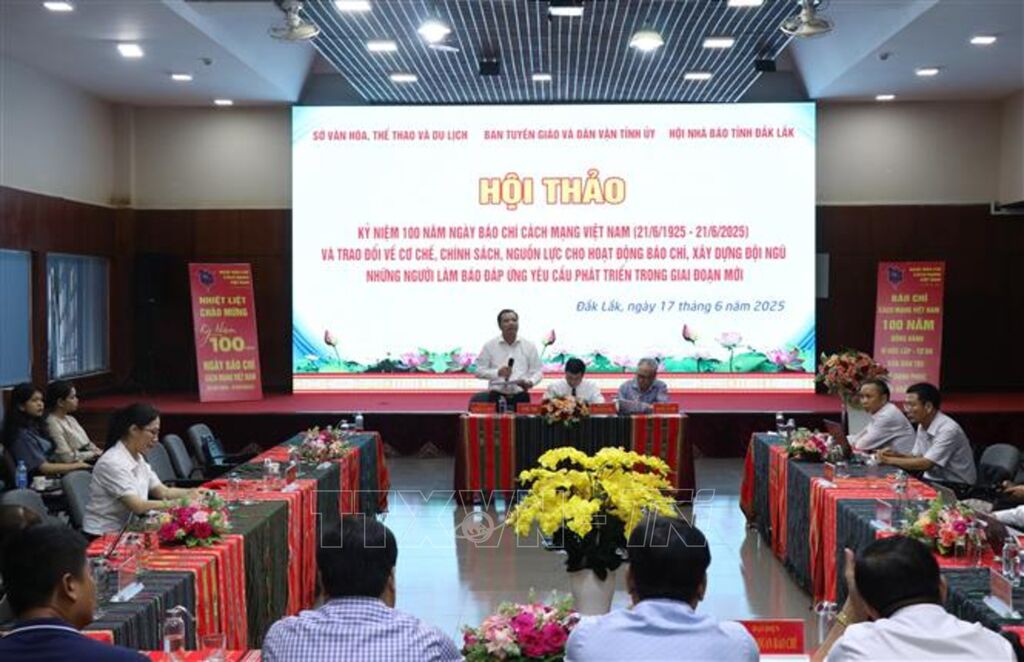 Chiều 17/6, Sở Văn hóa, Thể thao và Du lịch Đắk Lắk phối hợp với Ban Tuyên giáo và Dân vận Tỉnh ủy, Hội Nhà báo tỉnh tổ chức Hội thảo kỷ niệm 100 năm Ngày Báo chí Cách mạng Việt Nam (21/6/1925 - 21/6/2025) và trao đổi về cơ chế, chính sách, nguồn lực cho hoạt động báo chí, xây dựng đội ngũ những người làm báo đáp ứng yêu cầu phát triển trong giai đoạn mới.