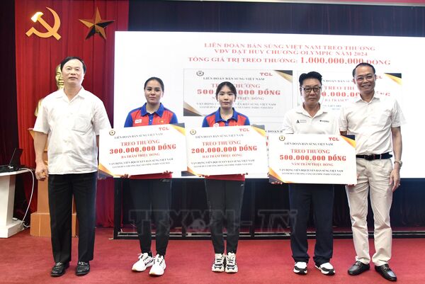 Liên đoàn Bắn súng Việt Nam cũng treo mức thưởng cụ thể cho các loại huy chương giành được tại Olympic 2024 gồm: 500 triệu đồng cho Huy chương Vàng, 300 triệu đồng cho Huy chương Bạc và 200 triệu đồng cho Huy chương Đồng.