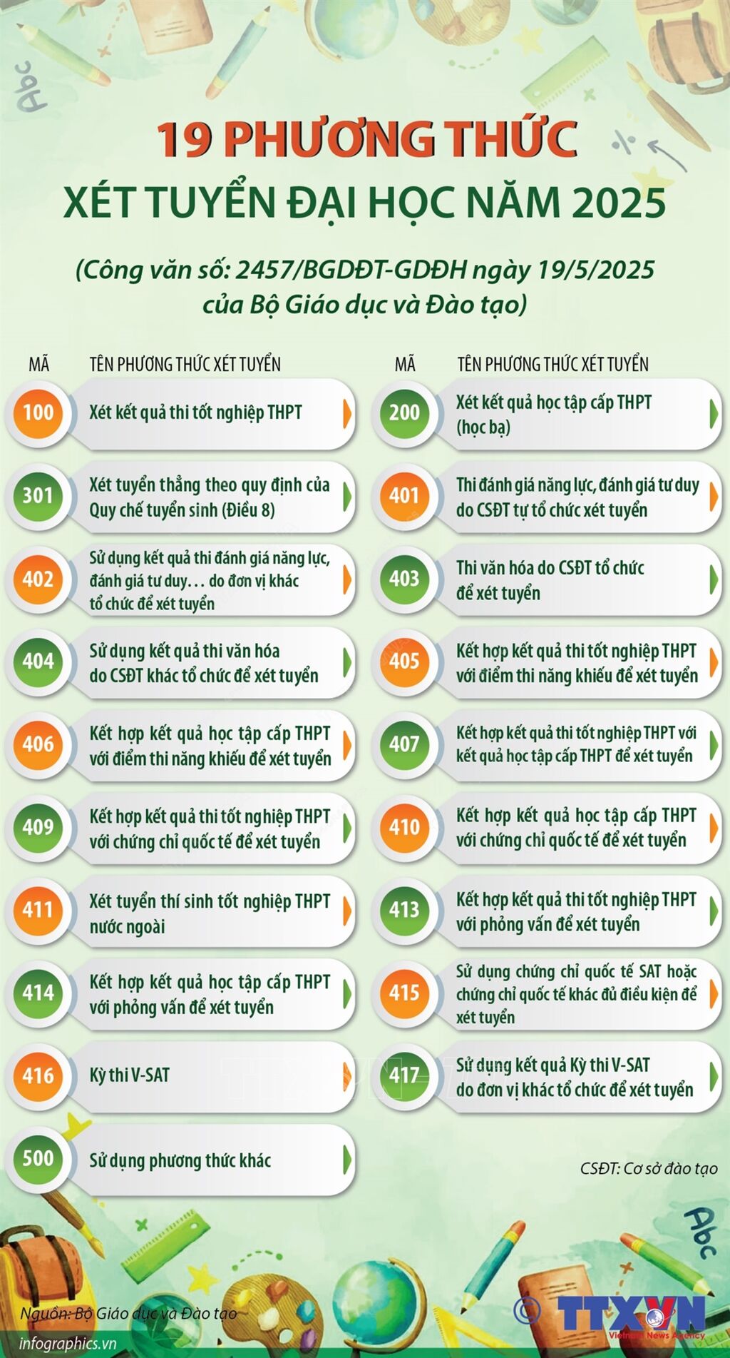 Trong số học sinh trúng tuyển diện tuyển thẳng có 106 học sinh trường Phổ thông dân tộc nội trú; 408 học sinh khuyết tật; 164 học sinh đoạt giải cấp quốc gia về văn hóa, văn nghệ, thể thao; cuộc thi nghiên cứu khoa học, kỹ thuật; 1 học sinh dân tộc rất ít người.
