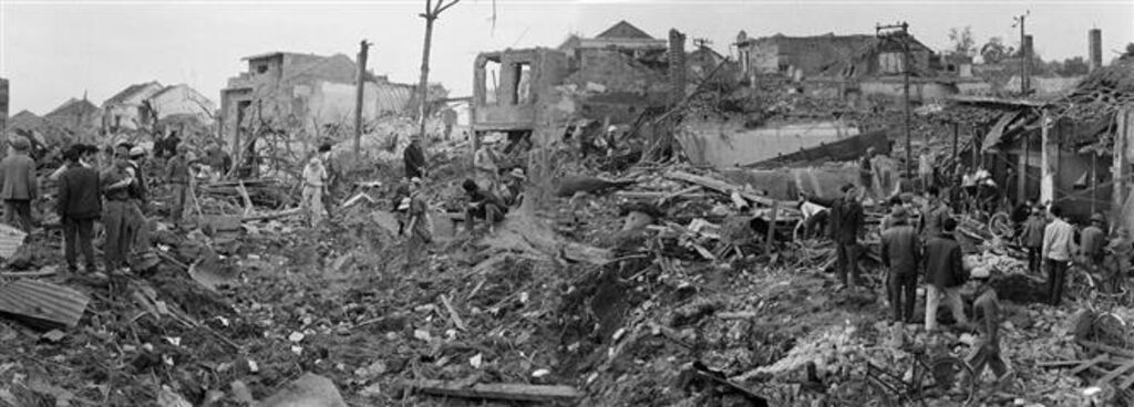 Phố Khâm Thiên bị B52 phá huỷ (12/1972). Ảnh: Tư liệu TTXVN