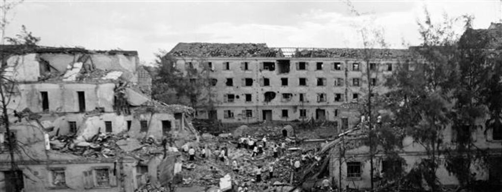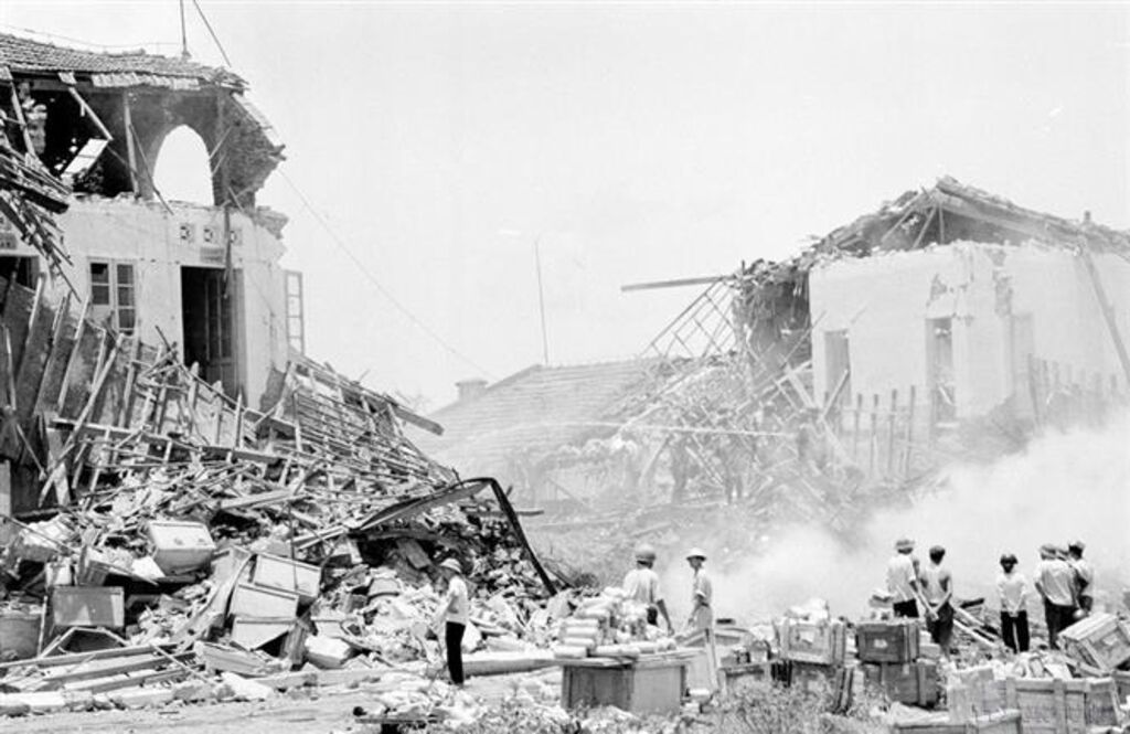 Bom Mỹ phá sập Trạm chống lao khu phố Đống Đa và kho được phẩm 2, Hà Nội (1972). Ảnh: Ngọc Quán/TTXVN