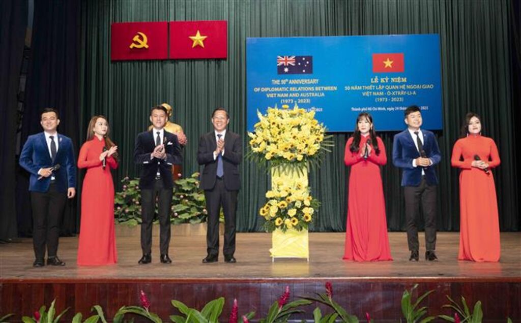 Phát biểu chúc mừng, ông Phan Văn Mãi, Chủ tịch UBND Thành phố Hồ Chí Minh nhấn mạnh, buổi Lễ kỷ niệm 50 năm thiết lập quan hệ ngoại giao Việt Nam-Australia không chỉ là dịp nhìn lại chặng đường quan hệ nửa thế kỷ đã qua, mà còn là cơ hội cùng nhau khởi đầu cho chặng đường hợp tác nửa thế kỷ tới và hơn thế nữa.