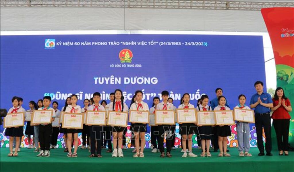 Tại chương trình, Hội đồng Đội Trung ương đã trao tặng danh hiệu “Dũng sĩ nghìn việc tốt” cho 200 thiếu nhi tiêu biểu trong cả nước; 63 “Dũng sĩ Nghìn việc tốt” xuất sắc nhất sẽ được nhận danh hiệu tại Lễ kỷ niệm và tuyên dương vào tối 24/3.