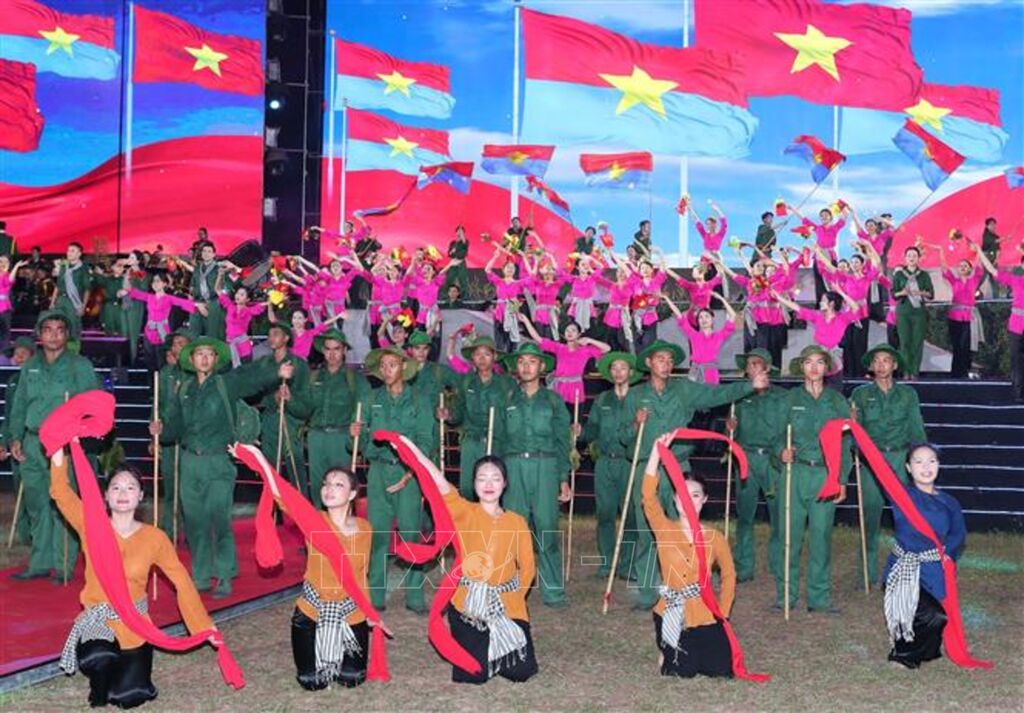 Bên cạnh đó, với gần 1.000 nghệ sĩ, diễn viên và lực lượng minh họa, qua những câu chuyện xúc động, nhân vật truyền cảm hứng và sự kết hợp tinh tế của nhiều loại hình nghệ thuật như giao hưởng, sử thi, pop-rock, nhạc nhẹ, múa đương đại đến múa súng, võ thuật..., chương trình đã mang đến cho khán giả một không gian nghệ thuật trang nghiêm, hào hùng mà xúc động. Các ca khúc, liên khúc như “Hò kéo pháo - Trên đồi Him Lam - Giải phóng Điện Biên”, “Toàn dân đánh giặc”, “Giải phóng miền Nam”, “Đất nước”. “Tình anh em Việt - Lào - Campuchia”, “Lời tạm biệt chưa nói”... đã được các ca sĩ trong và ngoài Quân đội thể hiện đầy cảm xúc.