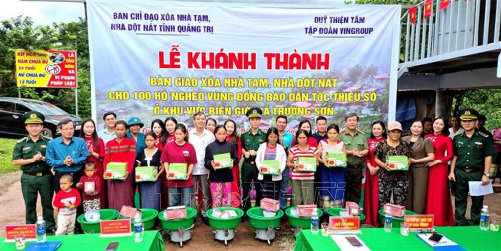 Tại xã Trường Sơn, những ngôi nhà mới đã được hoàn thành, đảm bảo tiêu chuẩn, chắc chắn, an toàn, thẩm mỹ, công năng phù hợp với phong tục tập quán của người dân. Kinh phí hỗ trợ xây dựng 100 ngôi nhà có tổng trị giá 12 tỷ đồng, từ nguồn kinh phí thực hiện Chương trình mục tiêu quốc gia phát triển kinh tế - xã hội vùng đồng bào dân tộc thiểu số và miền núi, nguồn kinh phí xã hội hóa do Ủy ban Mặt trận Tổ quốc Việt Nam tỉnh Quảng Trị kêu gọi, vận động, trong đó có sự đóng góp, hỗ trợ tích cực từ Quỹ Thiện Tâm - Tập đoàn Vingroup.
