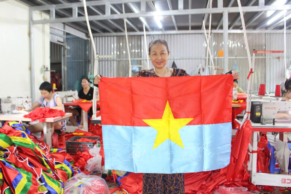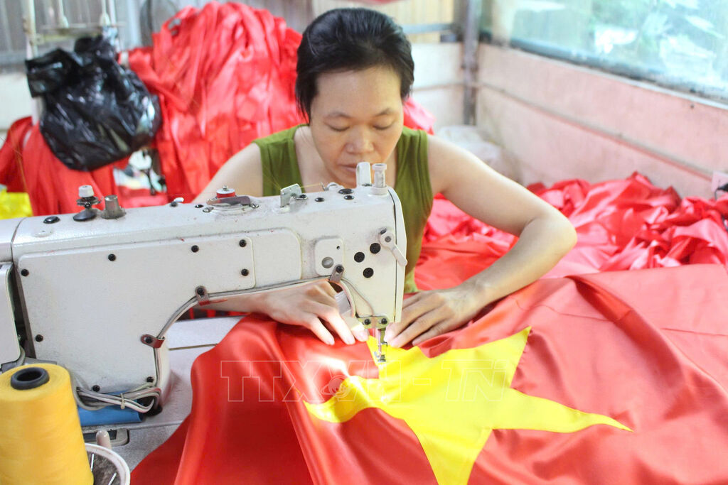 Những lá cờ đỏ sao vàng được tạo nên từ bàn tay cần mẫn của người thợ, góp phần tô thắm sắc đỏ trên khắp mọi miền đất nước.