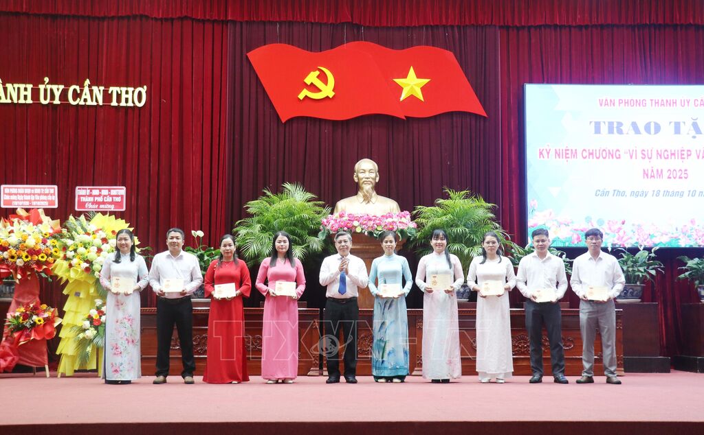 Tại buổi họp mặt, 11 cán bộ thuộc Văn phòng Thành ủy Cần Thơ có nhiều đóng góp cho sự nghiệp văn phòng cấp ủy được nhận Kỷ niệm chương “Vì sự nghiệp văn phòng cấp ủy” năm 2025; 1 tập thể và 11 cá nhân cán bộ, công chức Văn phòng Thành ủy có thành tích trong công tác tổ chức Đại hội đại biểu Đảng bộ thành phố Cần Thơ lần thứ I, nhiệm kỳ 2025-2030 nhận Bằng khen của Ban Thường vụ Thành ủy; Văn phòng Thành ủy tặng hoa cho cán bộ nữ nhân kỷ niệm 95 năm Ngày thành lập Hội Liên hiệp Phụ nữ Việt Nam./.