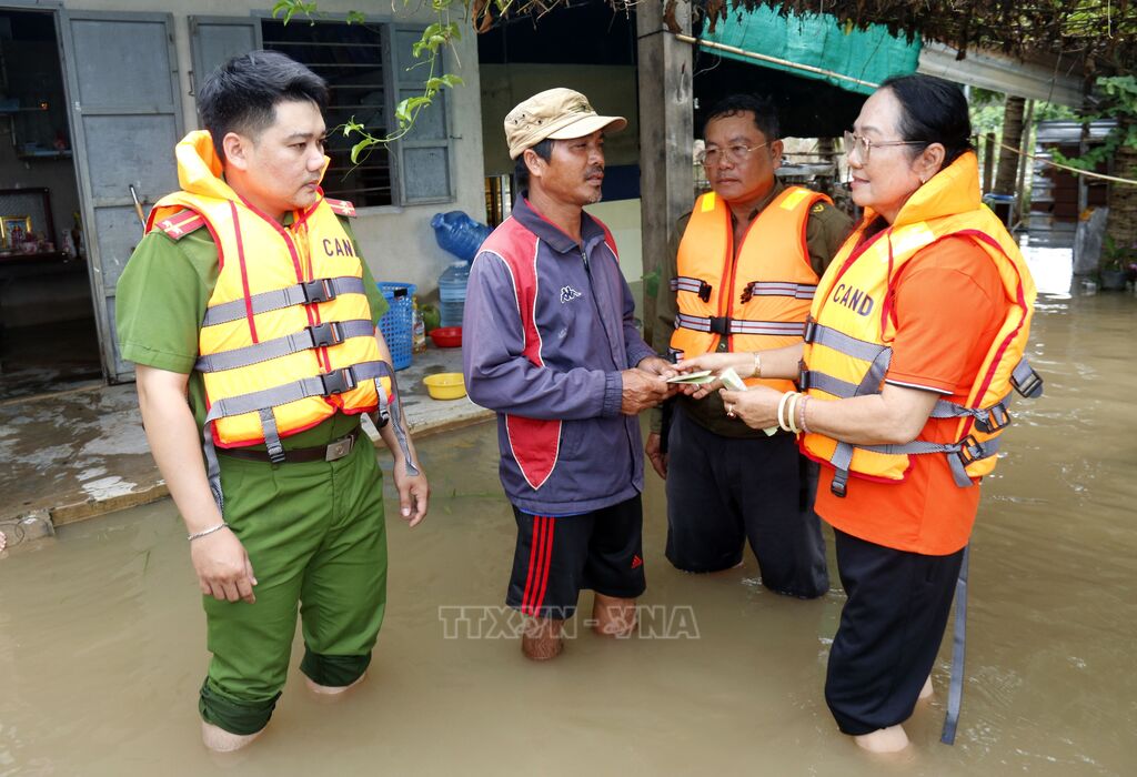 Ngay từ những ngày đầu mưa lũ, hàng trăm cán bộ, chiến sĩ, đoàn viên, thanh niên và người dân đã không ngại hiểm nguy, dầm mình trong nước để cứu người, di chuyển tài sản, hỗ trợ bà con. Giữa đêm tối, ánh đèn pin loang loáng soi đường cho những chuyến xuồng cứu hộ, từng hộp cơm, chai nước được trao tận tay, hay hình ảnh các lực lượng cùng dầm mình trong nước để hỗ trợ gia đình có tang lễ, cõng người già, trẻ nhỏ trên lưng giữa dòng nước…