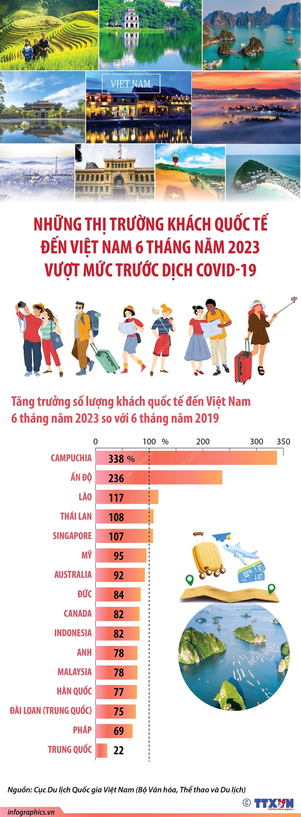 TTXVN - Theo Cục Du lịch Quốc gia Việt Nam, trong 6 tháng đầu năm 2023, du lịch Việt Nam đón khoảng 5,6 triệu lượt khách quốc tế. Đáng chú ý là thị trường Ấn Độ có sự tăng trưởng mạnh mẽ với hơn 141.000 lượt khách, đứng thứ 10 trong số các thị trường hàng đầu của du lịch Việt Nam.