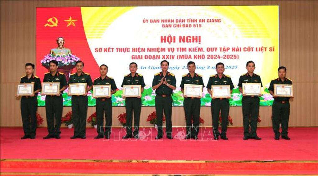 Tại hội nghị, UBND tỉnh An Giang tặng bằng khen cho 5 tập thể và 12 cá nhân vì đã có thành tích xuất sắc trong công tác tìm kiếm, quy tập hài cốt liệt sỹ giai đoạn XXIV (mùa khô 2024- 2025)./.