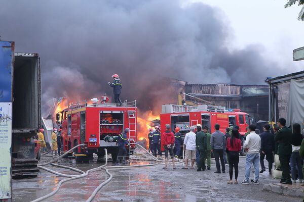 Lực lượng Cảnh sát Phòng cháy, chữa cháy và Cứu nạn, cứu hộ (Công an tỉnh Nam Định) đã điều động hàng chục xe chữa cháy và nhiều chiến sỹ đến hiện trường tiến hành dập lửa, khống chế đám cháy, không để cháy lan sang các xưởng bên cạnh.  -