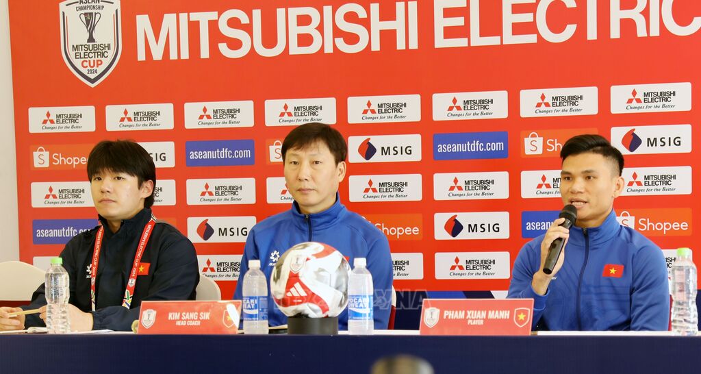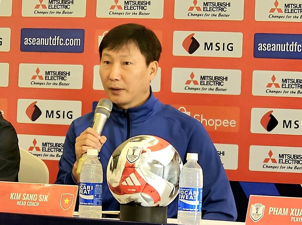 Mở đầu cuộc họp báo, Huấn luyện viên trưởng Đội tuyển Việt Nam Kim Sang-sik chúc mừng năm mới tới tất cả người dân Việt Nam và cảm ơn những phóng viên đã đồng hành cùng đội tuyển. Ông chia sẻ: "Đội Thái Lan là ngọn núi lớn, nhưng tôi nghĩ không có ngon núi nào là không thể vượt qua. Hy vọng các cầu thủ sẽ có màn thể hiện tốt trong trận đấu vào tối mai".