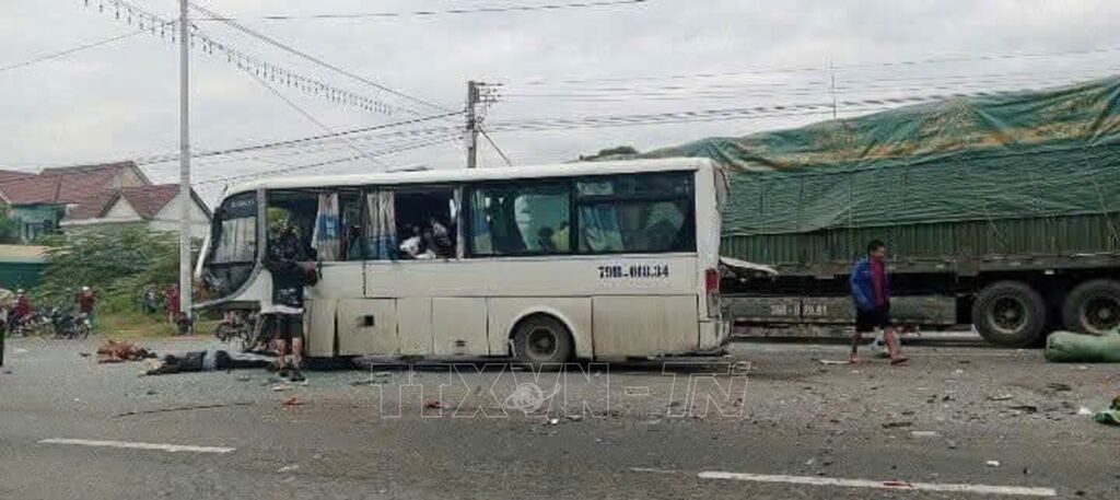 Sau cú va chạm, xe khách tiếp tục lao sang làn đường ngược chiều (hướng Bắc - Nam) và đâm vào xe container biển kiểm soát 36H-027.13 kéo theo rơ moóc biển số 36R-028.91. Tai nạn đã khiến một người tử vong tại chỗ, đồng thời gây ách tắc giao thông một chiều trên tuyến Quốc lộ 1.