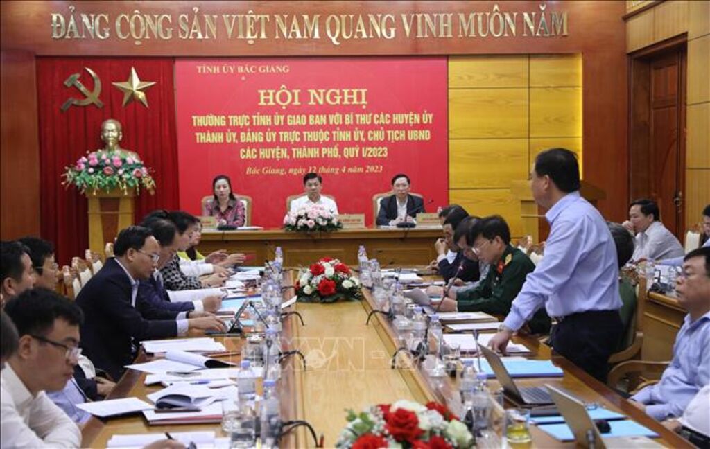 TTXVN - Tại Hội nghị giao ban quý I/2023 của Thường trực Tỉnh ủy Bắc Giang với các Huyện ủy, Đảng ủy trực thuộc Tỉnh ủy, Chủ tịch UBND các huyện, thành phố, tổ chức ngày 12/4, Bí thư Tỉnh ủy Dương Văn Thái đánh giá cao kết quả đạt được trong phát triển kinh tế - xã hội của địa phương và cho rằng đây là nỗ lực không ngừng của các sở, ban, ngành tạo dựng môi trường đầu tư, kinh doanh thuận lợi, bình đẳng, thông thoáng, minh bạch, thân thiện để thu hút đầu tư, phát triển doanh nghiệp.