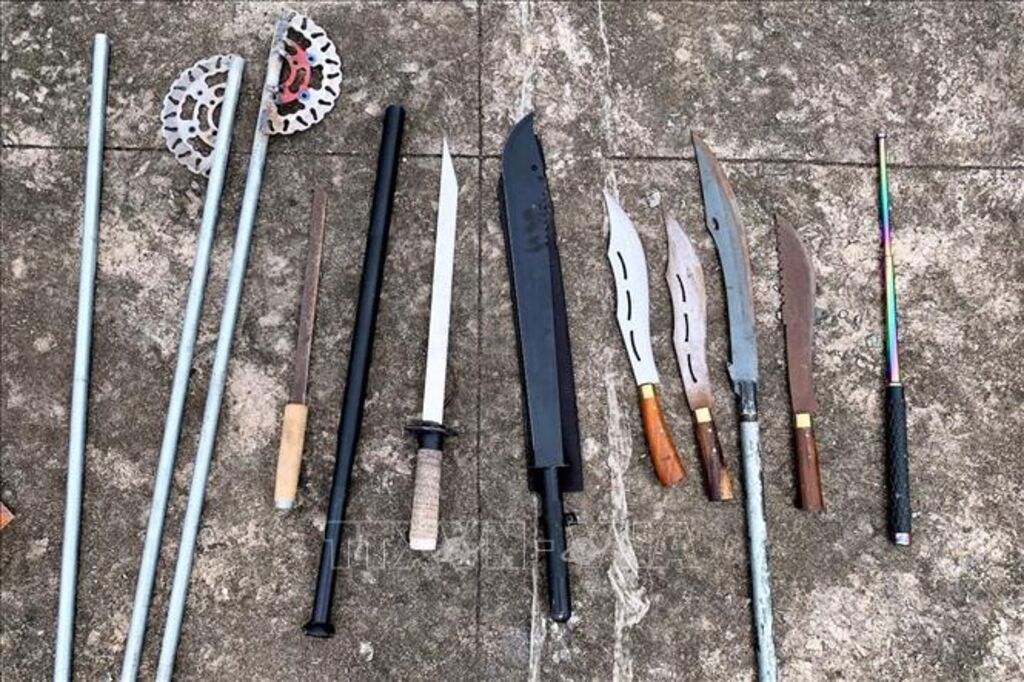 Số hung khí nhóm thanh niên mang theo. Ảnh: Trọng Nguyễn/TTXVN