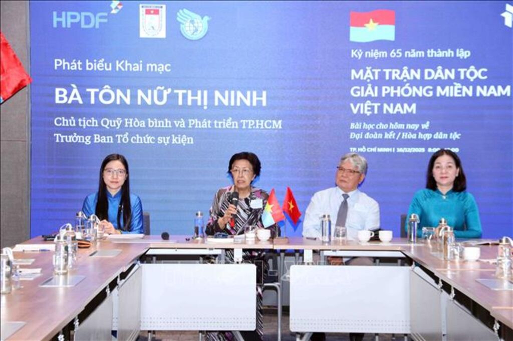 Sáng 16/12, Liên hiệp các tổ chức hữu nghị Thành phố Hồ Chí Minh phối hợp cùng Quỹ Hòa bình và Phát triển Thành phố, Ủy ban Hòa bình Thành phố tổ chức họp mặt - tọa đàm với chủ đề “Bài học cho hôm nay về đại đoàn kết - hòa hợp dân tộc”, kỷ niệm 65 năm thành lập Mặt trận Dân tộc Giải phóng miền Nam Việt Nam (20/12/1960 - 20/12/2025).