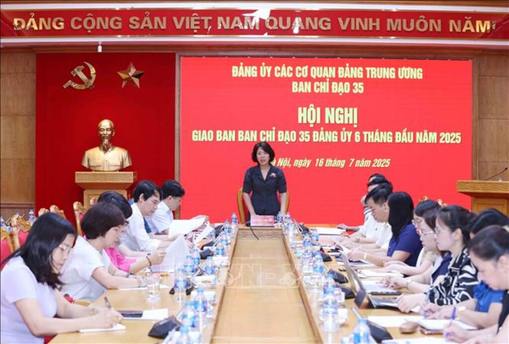 Phát biểu kết luận hội nghị, đồng chí Nguyễn Thị Hoàng Vân, Phó Bí thư Đảng ủy các cơ quan Đảng Trung ương, Trưởng Ban Chỉ đạo 35 Đảng ủy nhấn mạnh, hoạt động bảo vệ nền tảng tư tưởng của Đảng trong Đảng bộ các cơ quan Đảng Trung ương 6 tháng đầu năm 2025 đã đạt nhiều kết quả quan trọng, góp phần giữ vững trận địa tư tưởng, củng cố niềm tin của cán bộ, đảng viên và nhân dân vào sự lãnh đạo của Đảng. Công tác đấu tranh phản bác các quan điểm sai trái, thù địch ngày càng chủ động, sắc bén, gắn chặt giữa lý luận và thực tiễn, giữa tuyên truyền chính thống với các hình thức truyền thông hiện đại.
