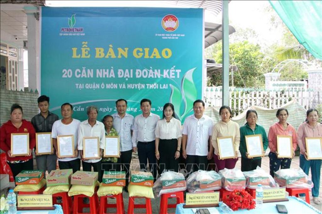 Chiều 29/3, Ủy ban Mặt trận Tổ quốc Việt Nam thành phố Cần Thơ phối hợp cùng Tập đoàn Dầu khí Việt Nam tổ chức Lễ bàn giao nhà Đại đoàn kết cho các hộ dân có hoàn cảnh khó khăn tại quận Ô Môn và huyện Thới Lai.