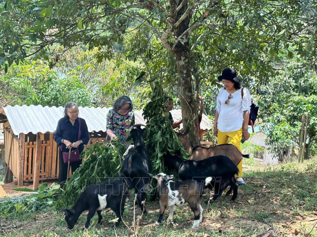 Từ những chuyến đi tiền trạm, bà Nữ Hiếu cùng nhóm thiện nguyện khởi động Dự án “Nuôi dê sinh sản” ở Lóng Sập (Sơn La). Với 50 triệu đồng quyên góp được, bà đã trao cho 5 hộ gia đình dân tộc Mông ở Lóng Sập, mỗi hộ 4 con dê làm vốn. Không chỉ trao con giống, bà còn cùng Bộ đội Biên phòng và chính quyền địa phương ký biên bản phối hợp, trực tiếp theo dõi từng bước triển khai. Bà tỉ mỉ hướng dẫn đồng bào cách làm chuồng trại, chuẩn bị thức ăn, mời cả chuyên gia kỹ thuật về tập huấn tận nơi. Từ 20 con dê ban đầu, đến nay đàn dê đã sinh sôi, mang lại nguồn thu nhập ổn định, giúp nhiều hộ dân thoát nghèo.