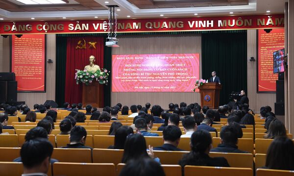 Cũng tại hội nghị, đồng chí Nguyễn Thanh Bình, Vụ trưởng Vụ Tổ chức - Điều lệ (Ban Tổ chức Trung ương) giới thiệu một số điểm chính trong Hướng dẫn số 22-HD/BTCTW, ngày 3/1/2023 của Ban Tổ chức Trung ương về một số nội dung trong tuyển dụng công chức, viên chức cơ quan đảng, Mặt trận Tổ quốc Việt Nam và các tổ chức chính trị - xã hội.