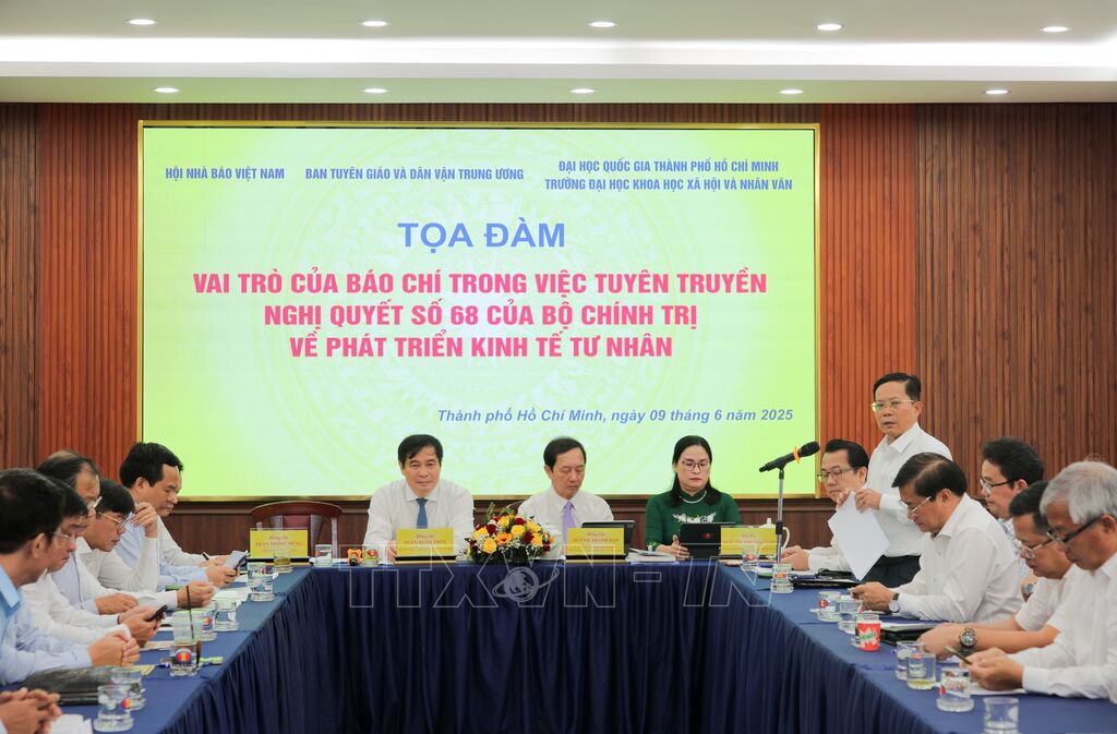 Ngày 9/6, tại Trường Đại học Khoa học Xã hội và Nhân văn, Đại học Quốc gia Thành phố Hồ Chí Minh diễn ra tọa đàm “Vai trò của báo chí góp phần trong việc tuyên truyền thực hiện Nghị quyết số 68-NQ/TW của Bộ Chính trị về phát triển kinh tế tư nhân”. Sự kiện do Ban Tuyên giáo và Dân vận Trung ương phối hợp với Hội Nhà báo Việt Nam, Trường Đại học Khoa học Xã hội và Nhân văn tổ chức.