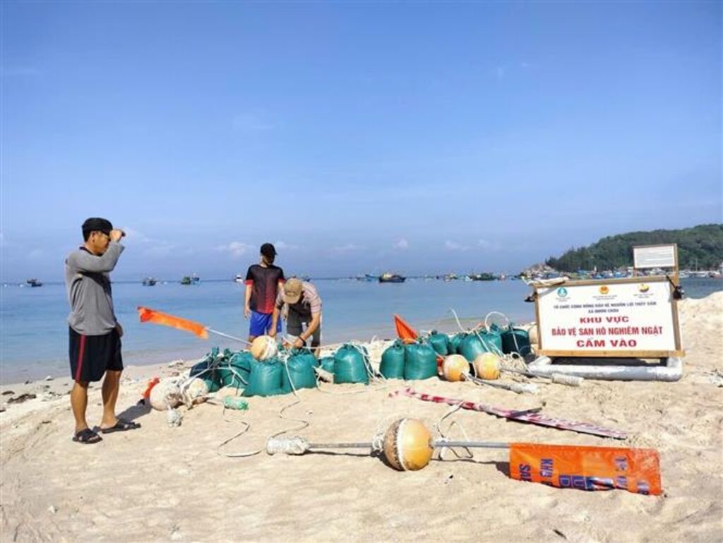 Trước thực trạng đó, chính quyền và người dân đã thành lập tổ cộng đồng bảo vệ nguồn lợi thủy sản với 37 thành viên nòng cốt. Họ tình nguyện khoanh vùng bảo vệ, dọn rác thải dưới biển, lặn quan trắc san hô, nhắc nhở du khách và ngư dân mỗi khi có hành vi gây hại.