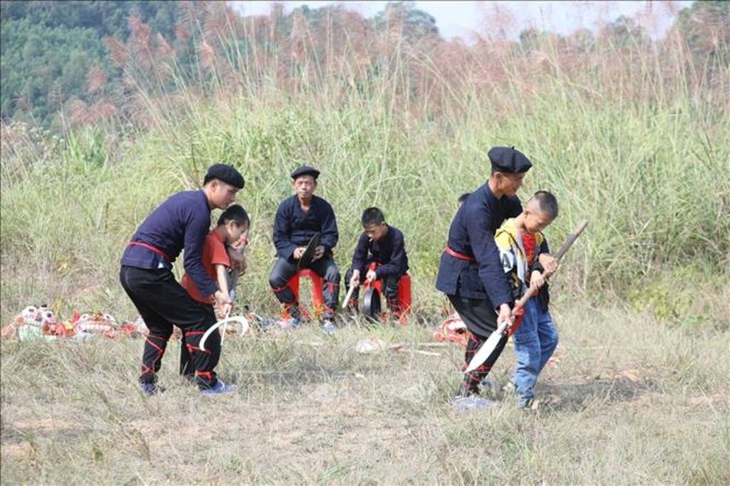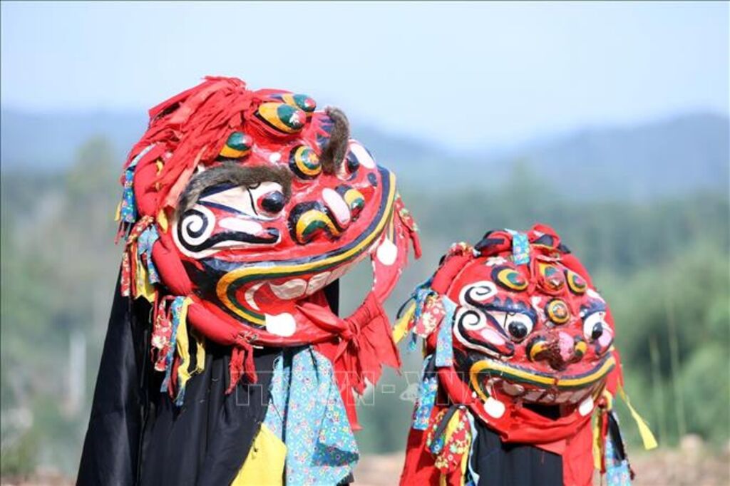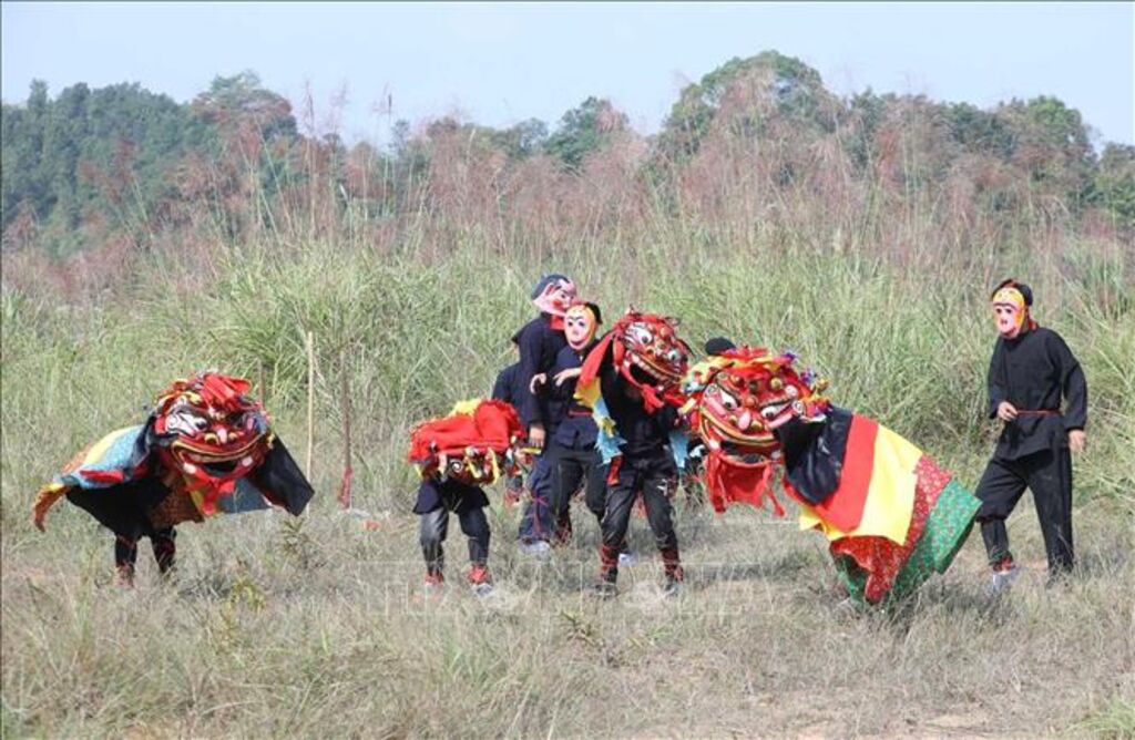 Múa sư tử mèo là loại hình nghệ thuật dân gian, thường được biểu diễn trong các dịp lễ, Tết của người Tày, Nùng ở Hội Hoan. (Ảnh: Anh Tuấn/TTXVN).
