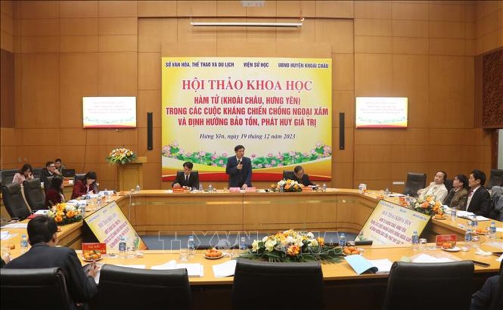 TTXVN - Ngày 19/12, tại Trung tâm Thông tin - Hội nghị tỉnh, Sở Văn hóa, Thể thao và Du lịch tỉnh Hưng Yên phối hợp với Viện Sử học (Viện Hàn lâm Khoa học xã hội Việt Nam), UBND huyện Khoái Châu tổ chức Hội thảo khoa học với chủ đề: Hàm Tử trong các cuộc kháng chiến chống ngoại xâm và định hướng bảo tồn, phát huy giá trị.