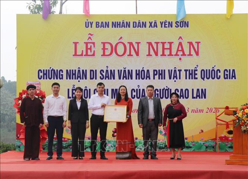 Sáng 20/3, Lễ đón nhận chứng nhận di sản văn hóa phi vật thể quốc gia đối với Lễ hội Cầu mùa của dân tộc Cao Lan đã diễn ra tại thôn Động Sơn, xã Yên Sơn (tỉnh Tuyên Quang). Sự kiện thu hút đông đảo nhân dân và du khách tham dự, thể hiện niềm tự hào và ý thức gìn giữ di sản văn hóa truyền thống của cộng đồng.