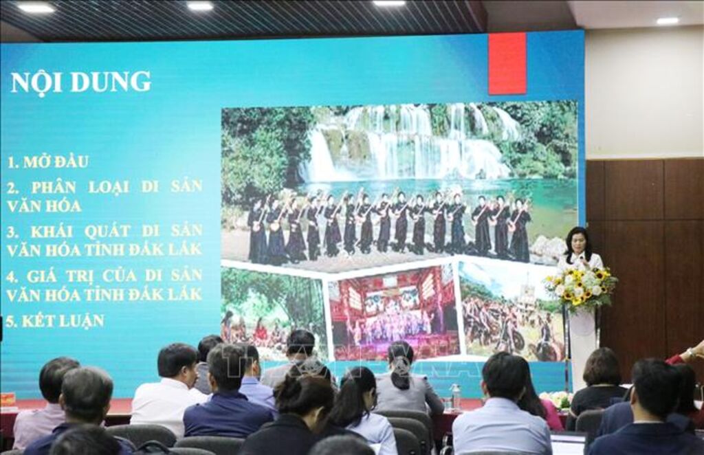 Tiến sĩ Phạm Thị Xuân Nga, Phó Giám đốc chi nhánh Viện Khoa học xã hội vùng Trung Bộ và Tây Nguyên cho rằng: Hệ thống di sản văn hóa Đắk Lắk là một bức tranh tổng thể đa sắc màu, hội tụ từ các di tích lịch sử, kiến trúc nghệ thuật độc đáo ở Tây Nguyên và Duyên hải Nam Trung Bộ, đến các di sản phi vật thể của nhân loại như cồng chiêng Tây Nguyên, bài chòi… Để bảo tồn và phát huy bền vững những giá trị này, cần khắc phục kịp thời các khó khăn. Mục tiêu là vừa giữ vững được tính nguyên gốc của di sản, vừa tạo ra giá trị kinh tế bền vững từ kho tàng văn hóa phong phú của tỉnh. Với sự vào cuộc đồng bộ của Nhà nước, cộng đồng và chuyên gia, di sản văn hóa Đắk Lắk sẽ được bảo vệ và trở thành động lực cho sự phát triển.
