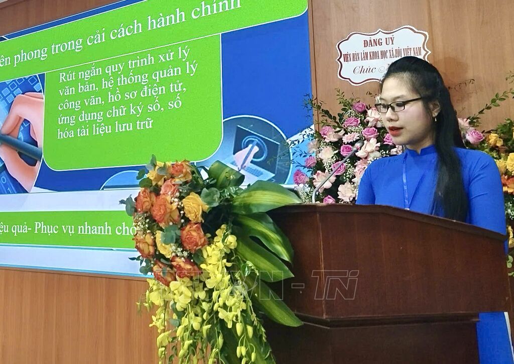Thạc sĩ Nguyễn Thu Trang, chi đoàn Văn phòng và cơ quan chức năng cho rằng, thanh niên Viện Hàn lâm là lực lượng nòng cốt trong quá trình chuyển đổi số, góp phần xây dựng nền hành chính hiện đại, minh bạch, hiệu quả. Nhiều sáng kiến của đoàn viên đã được ứng dụng thực tiễn như số hóa hồ sơ, quản lý văn bản điện tử, sử dụng chữ ký số, tổ chức họp trực tuyến, hay triển khai “Kho dữ liệu số dùng chung” phục vụ nghiên cứu khoa học... Đoàn Thanh niên Viện Hàn lâm là lực lượng tiên phong ứng dụng trí tuệ nhân tạo trong hoạt động nghiên cứu, xử lý dữ liệu khoa học và truyền thông tri thức, từng bước đưa công nghệ số vào đời sống nghiên cứu xã hội học thuật.