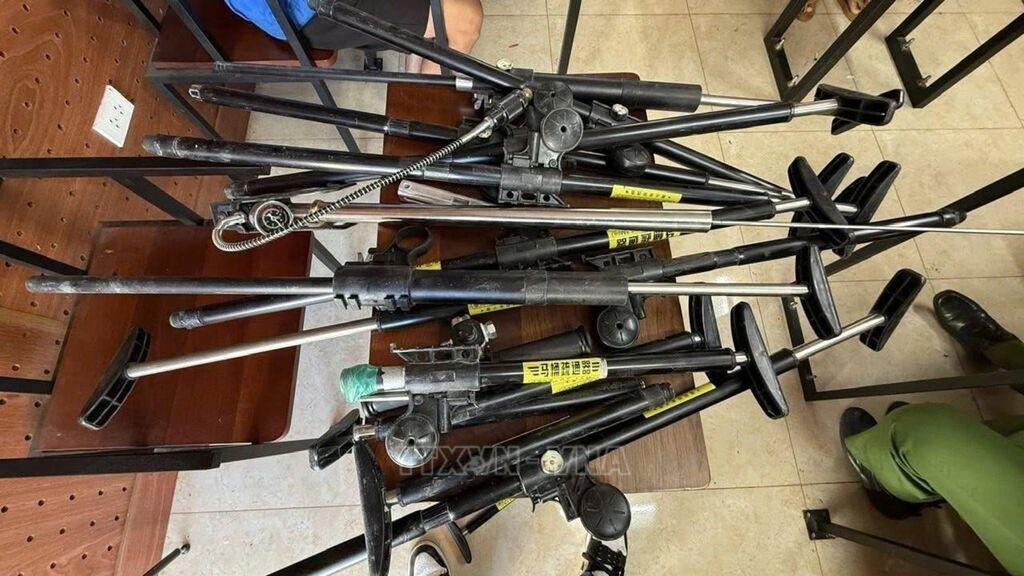 Khám xét nơi ở của các đối tượng, Công an thu giữ 5 khẩu súng quân dụng cùng nhiều thiết bị, dụng cụ dùng để chế tạo súng.