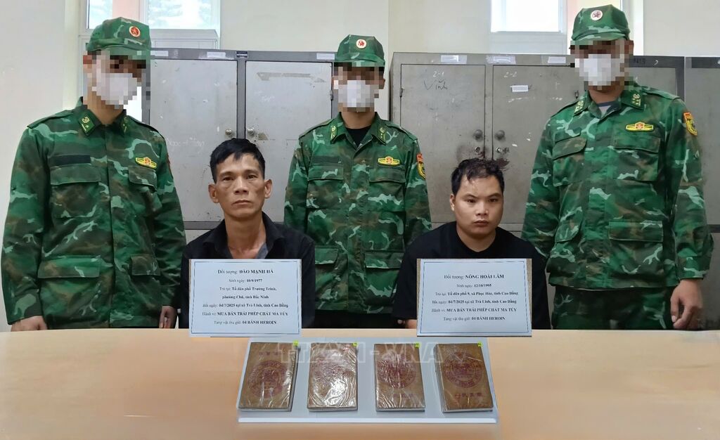 Các đối tượng bị bắt giữ gồm: Nông Hoài Lâm (sinh năm 1995, trú tại xã Phục Hòa, tỉnh Cao Bằng); Đào Mạnh Hà (sinh năm 1977, trú tại phường Chũ, tỉnh Bắc Ninh); Nguyễn Văn Sáng (sinh năm 1986, trú tại xã Kha Sơn, tỉnh Thái Nguyên); Hoàng Văn Thông (sinh năm 1992, trú tại xã Quang Long, tỉnh Cao Bằng). Tang vật thu giữ gồm 4 bánh heroin (tổng khối lượng 1.342,7 gram), một ô tô, một xe máy và 4 điện thoại di động.