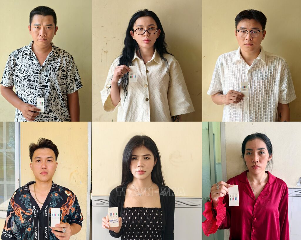 Tại phòng ở tầng trệt, có 6 đối tượng (3 nam, 3 nữ) đang tụ tập. Tang vật thu giữ tại chỗ gồm một đĩa sứ chứa chất bột màu trắng nghi là ma túy, một thẻ căn cước công dân và một tờ tiền polymer cuộn tròn đều dính chất bột tương tự, cùng nhiều dụng cụ khác.