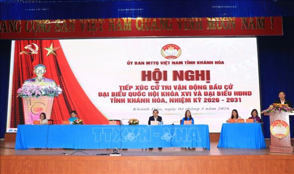 Nhằm tạo điều kiện cho những người ứng cử đại biểu Quốc hội khóa XVI và HĐND các cấp nhiệm kỳ 2026-2031 trình bày chương trình hành động, vận động bầu cử, Ủy ban Mặt trận Tổ quốc Việt Nam tỉnh Khánh Hòa phối hợp với chính quyền địa phương tổ chức Hội nghị tiếp xúc cử tri bằng hình thức trực tiếp kết hợp trực tuyến.