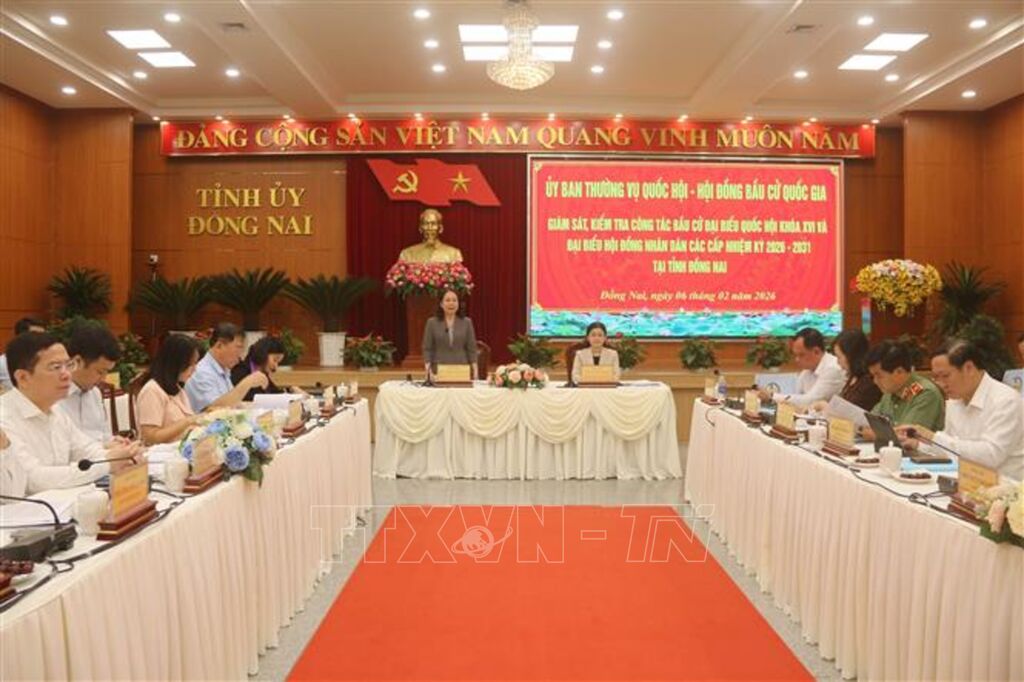Ngày 6/2, tại phường Trấn Biên (Đồng Nai), Bí thư Trung ương Đảng, Phó Chủ tịch nước Võ Thị Ánh Xuân, Phó Chủ tịch Hội đồng bầu cử Quốc gia dẫn đầu Đoàn công tác của Ủy ban Thường vụ Quốc hội và Hội đồng bầu cử Quốc gia đã kiểm tra thực tế, làm việc với Ủy ban bầu cử tỉnh Đồng Nai về công tác chuẩn bị cho bầu cử đại biểu Quốc hội khóa XVI và Hội đồng nhân dân (HĐND) các cấp nhiệm kỳ 2026-2031.