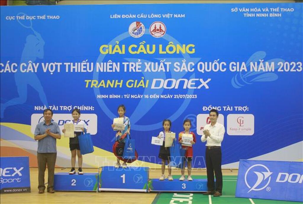 TTXVN - Ngày 21/7, tại Nhà thi đấu Thể dục Thể thao tỉnh Ninh Bình đã diễn ra các trận chung kết và lễ bế mạc Giải Cầu lông các cây vợt thiếu niên, trẻ xuất sắc quốc gia năm 2023. Giải do Sở Văn hóa và Thể thao tỉnh Ninh Bình phối hợp với Liên đoàn Cầu lông Việt Nam tổ chức.