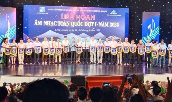 TTXVN - Sau 2 ngày diễn ra, tối 4/6, tại An Giang, Liên hoan Âm nhạc toàn quốc đợt I - năm 2023 do Hội Nhạc sĩ Việt Nam phối hợp với tỉnh An Giang tổ chức đã chính thức bế mạc.