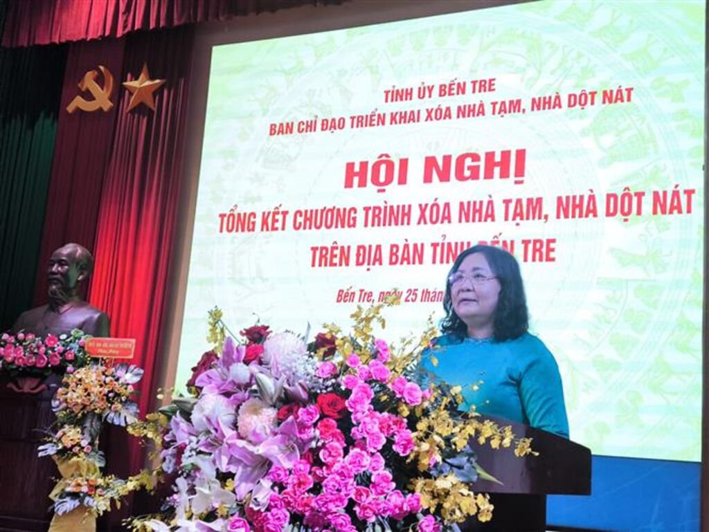 Bí thư Tỉnh ủy Bến Tre Hồ Thị Hoàng Yến cho biết, trong 2 năm qua, Tỉnh ủy xác định công tác xóa nhà tạm, nhà dột nát là nhiệm vụ chính trị quan trọng, với tinh thần “không để ai bị bỏ lại phía sau”. Ban Chỉ đạo tỉnh đã được thành lập và chỉ đạo quyết liệt, huy động sự vào cuộc đồng bộ của cấp ủy, chính quyền, các tổ chức chính trị - xã hội và sự hưởng ứng tích cực từ nhân dân.