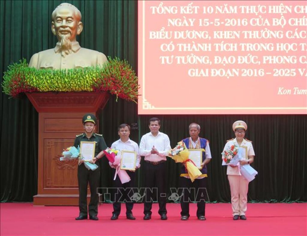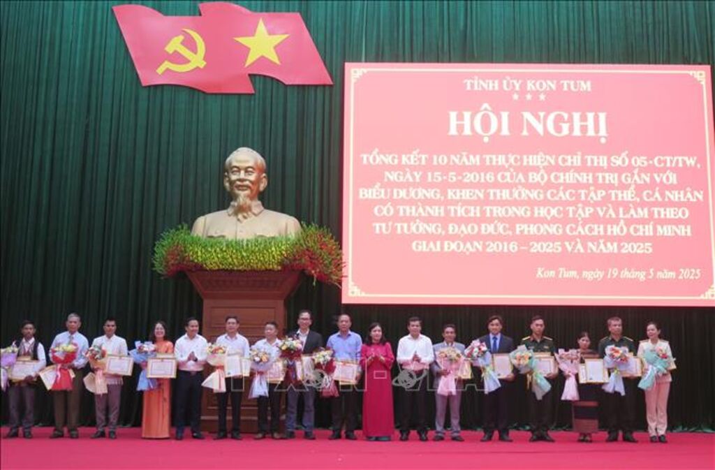 Theo ông Nguyễn Minh Tuấn, Trưởng Ban Tuyên giáo và Dân vận Tỉnh ủy Kon Tum, 10 năm đẩy mạnh triển khai Chỉ thị 05-CT/TW của Bộ Chính trị về học tập, làm theo tư tưởng, đạo đức, phong cách Hồ Chí Minh, toàn tỉnh có 17 tập thể, cá nhân được Thủ tướng Chính phủ tặng Bằng khen; 9 tập thể, cá nhân được Ban Tuyên giáo Trung ương tặng Bằng khen; 465 tập thể, cá nhân được biểu dương, khen thưởng ở cấp tỉnh; hơn 2.700 tập thể, cá nhân được biểu dương, khen thưởng ở cấp huyện.