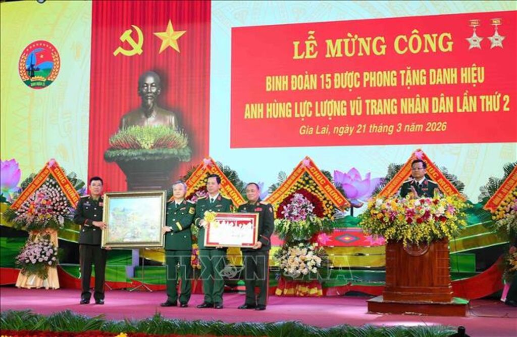 Ngày 21/3, tại phường Thống Nhất, tỉnh Gia Lai, Binh đoàn 15 (Bộ Quốc phòng) tổ chức Lễ mừng công đón nhận danh hiệu Anh hùng Lực lượng vũ trang nhân dân lần thứ hai. Đây là phần thưởng cao quý của Đảng, Nhà nước, ghi dấu mốc quan trọng trong hơn 41 năm xây dựng, chiến đấu và trưởng thành của đơn vị trên địa bàn chiến lược Tây Nguyên.