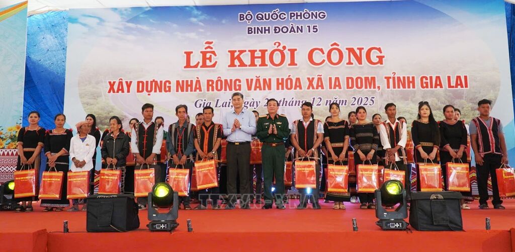 Ông Trần Ngọc Phận, Bí thư Đảng ủy xã Ia Dom, tỉnh Gia Lai đánh giá cao sự phối hợp, hỗ trợ thiết thực của Binh đoàn 15 trong việc chăm lo đời sống văn hóa, tinh thần cho nhân dân vùng biên giới; khẳng định công trình Nhà rông văn hóa xã Ia Dom sẽ trở thành điểm sinh hoạt cộng đồng quan trọng, góp phần củng cố đoàn kết buôn làng, giữ gìn bản sắc văn hóa truyền thống và thúc đẩy phát triển kinh tế - xã hội tại địa phương.