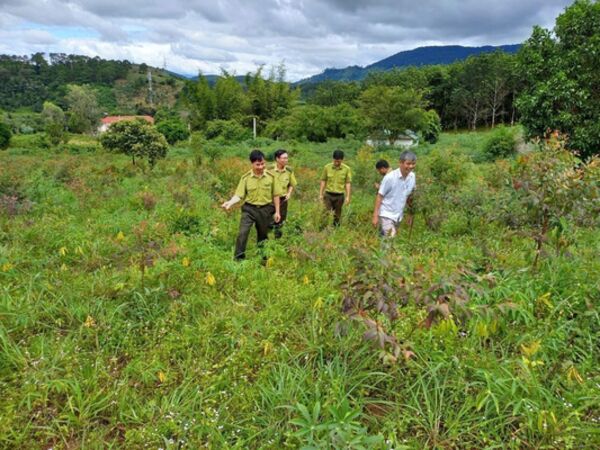 Đoàn kiểm tra trưng cầu đơn vị chức năng tiến hành đo đạc. Kết quả cho thấy tổng diện tích chứa chất thải là 933m2, gồm 9 điểm (3 điểm chôn chất thải, 6 điểm chất thải lộ thiên), thể tích 1.878m3.