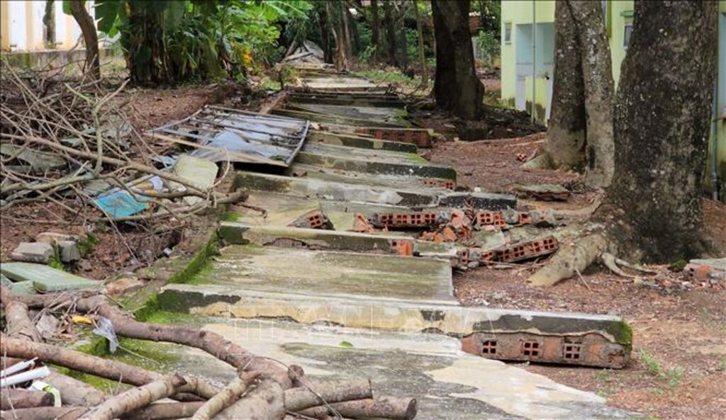 Ở một số khu vực có cây gãy đổ; toàn bộ dãy tường rào tiếp giáp giữa Trường Mầm non Hướng Dương với Trường Trung học cơ sở Tân Đồng thuộc phường Tân Đồng bị đổ sập hoàn toàn, đất đá tràn vào một số phòng học. Ngoài ra, một đoạn tường rào của Trường Tiểu học Tân Phú, tường đổ đè lên 1 xe ô tô con đậu trên vỉa hè đường Lý Thường Kiệt gần khu vực tường sập.
