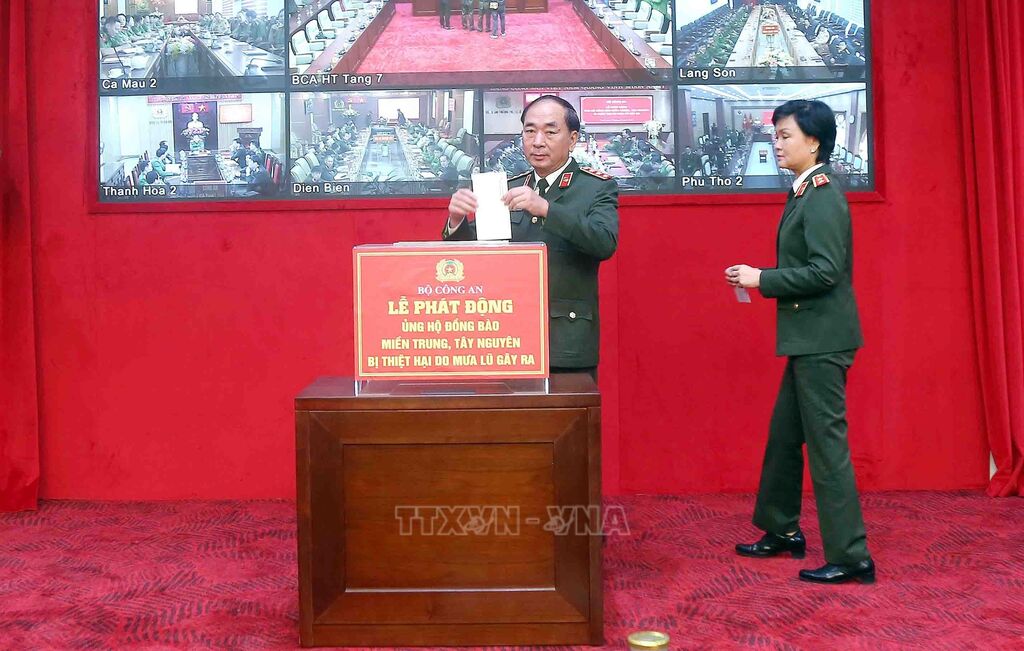 Sáng 27/11, Bộ Công an tổ chức Lễ phát động ủng hộ đồng bào các tỉnh khu vực miền Trung, Tây Nguyên bị ảnh hưởng bởi bão lũ nhằm kịp thời góp phần hỗ trợ nhân dân khắc phục khó khăn, sớm ổn định cuộc sống. Lễ phát động được tổ chức trực tuyến từ Hội trường Bộ Công an, số 96 Nguyễn Du, thành phố Hà Nội đến điểm cầu trực tuyến Công an các tỉnh, thành phố.