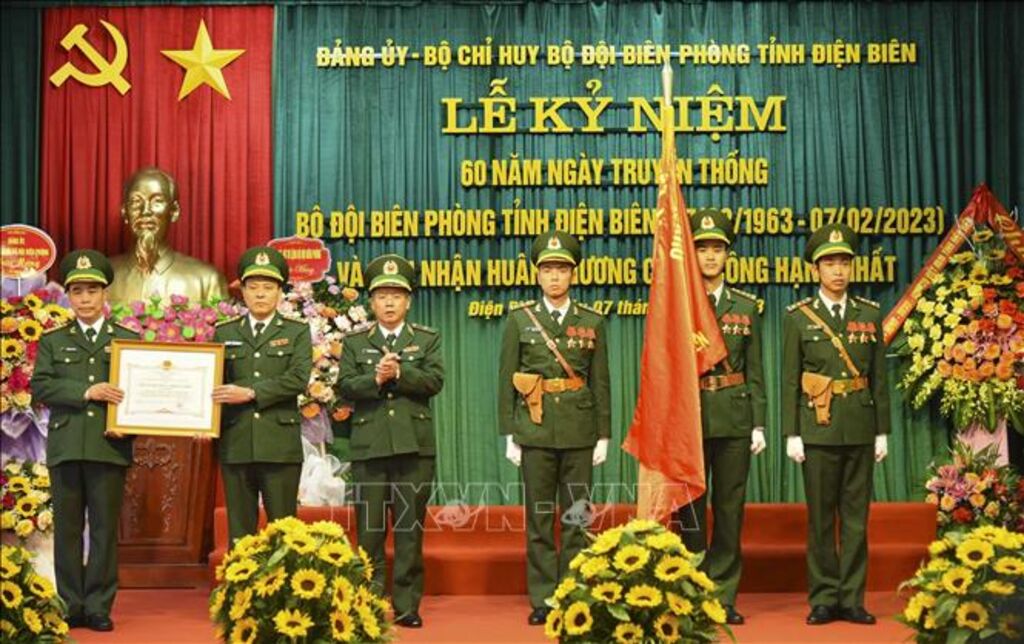TTXVN - Ngày 7/2, Bộ Chỉ huy Bộ đội Biên phòng tỉnh Điện Biên tổ chức kỷ niệm 60 năm Ngày truyền thống Bộ đội Biên phòng tỉnh Điện Biên (7/2/1963 - 7/2/2023) và đón nhận Huân chương Chiến công hạng Nhất.