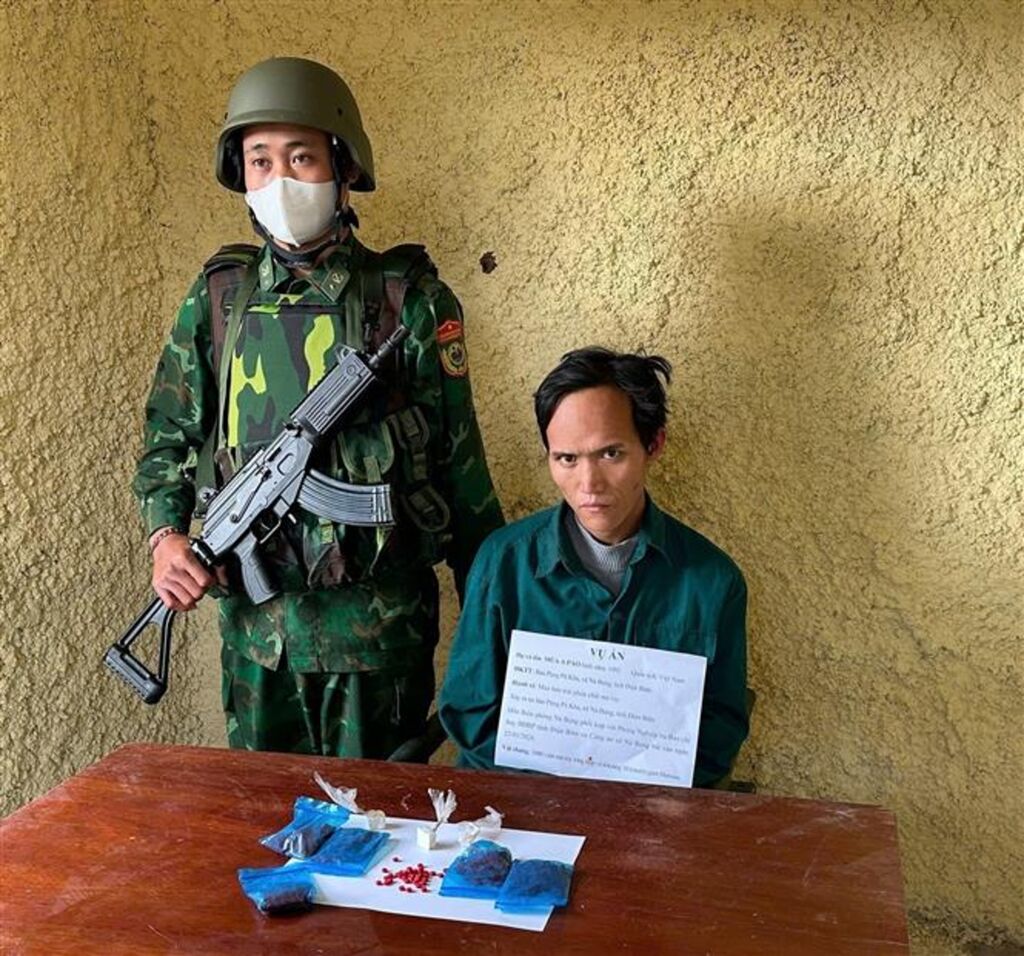 Phòng Nghiệp vụ, Bộ đội Biên phòng tỉnh Điện Biên cho biết, đơn vị vừa bắt giữ một đối tượng có hành vi mua bán trái phép chất ma túy, tang vật thu 1.000 viên ma túy tổng hợp và10 gram heroin. Trước đó, vào khoảng 17 giờ, ngày 22/1, lực lượng Phòng Nghiệp vụ, Bộ đội Biên phòng tỉnh Điện Biên chủ trì phối hợp với Đồn Biên phòng Nà Bủng, Công an xã Nà Bủng (tỉnh Điện Biên) phát hiện, bắt giữ đối tượng Mùa A Páo (sinh năm 1992) trú tại bản Púng Pá Kha, xã Nà Bủng, tỉnh Điện Biên, khi đang có hành vi mua bán trái phép chất ma túy. Qua kiểm tra, tổ công tác phát hiện trong túi áo của Páo giấu 5 gói nylon màu xanh bên trong có các viên nén màu hồng ký hiệu WY, số lượng 1.000 viên và 3 cục chất bột dạng nén màu trắng có trọng lượng khoảng 10 gram.