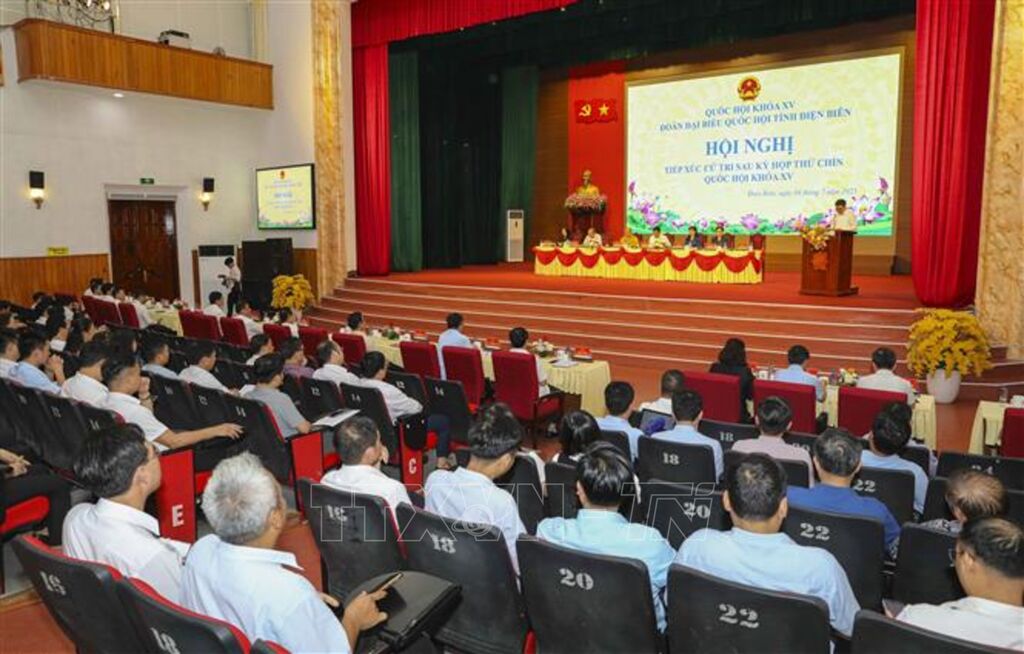Cử tri tỉnh Điện Biên bày tỏ sự nhất trí, đồng tình với những nội dung đã được Quốc hội thông qua tại Kỳ họp thứ 9. Cử tri 2 phường Điện Biên Phủ và Mường Thanh có ý kiến, kiến nghị liên quan đến các công trình, dự án, sinh kế của người dân trên địa bàn. Trong đó, cử tri Tổ dân phố 3, phường Điện Biên Phủ (phường Mường Thanh cũ) đề nghị xem xét và giải quyết vấn đề liên quan đến công tác quy hoạch để không ảnh hưởng đến cuộc sống người dân tại địa phương. Cử tri bản Mớ, phường Điện Biên Phủ (phường Thanh Trường cũ) có ý kiến về phương án bố trí tái định cư, mức đền bù liên quan đến giải tỏa đền bù Dự án đường Thanh Minh - Độc Lập; đề nghị đại biểu Quốc hội xem xét, giải quyết thỏa đáng cho người dân.