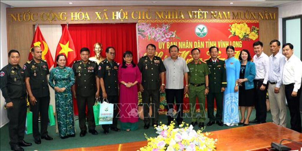 Ngày 16/1, Đoàn công tác Bộ Tư lệnh Quân khu 3 của Quân đội Hoàng gia Campuchia do Trung tướng Ui Hiêng - Tư lệnh Quân khu 3 làm Trưởng đoàn đến thăm, chúc Tết cổ truyền Ất Tỵ năm 2025 tại tỉnh Vĩnh Long.