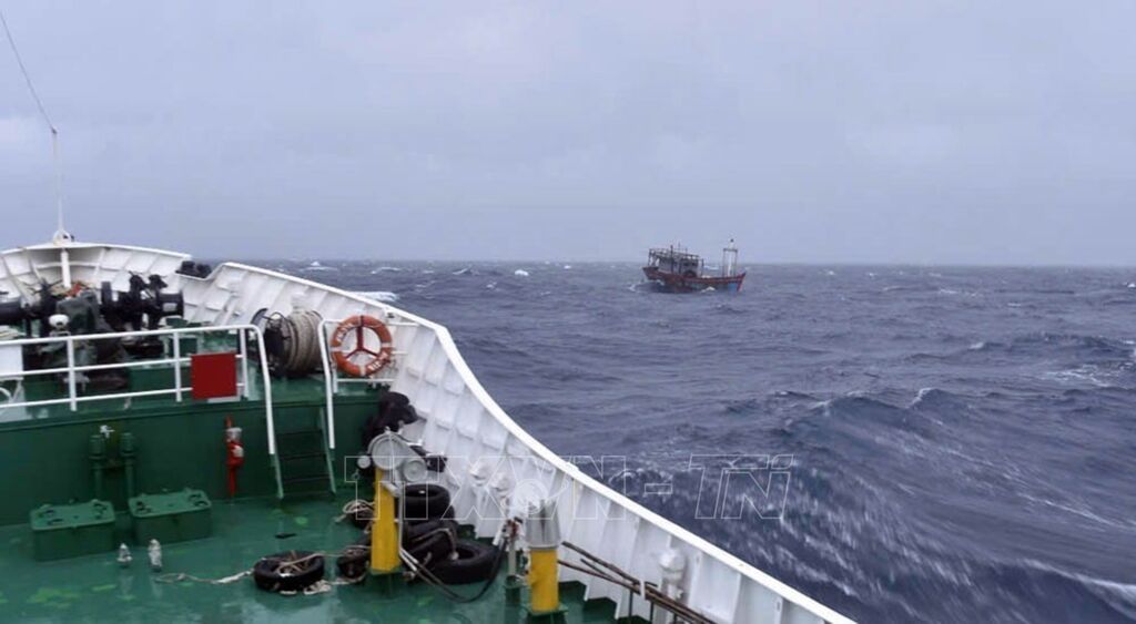 Do ảnh hưởng của bão số 1 diễn biến phức tạp, gió cấp 7, cấp 8, sóng cao 2 đến 3m, đến khoảng 8 giờ ngày 12/6, tàu 319 lai kéo 2 tàu cá trên về đến vị trí neo đậu tránh gió tại đảo Lý Sơn, bàn giao người và phương tiện cho Đồn Biên phòng Lý Sơn, tỉnh Quảng Ngãi./.